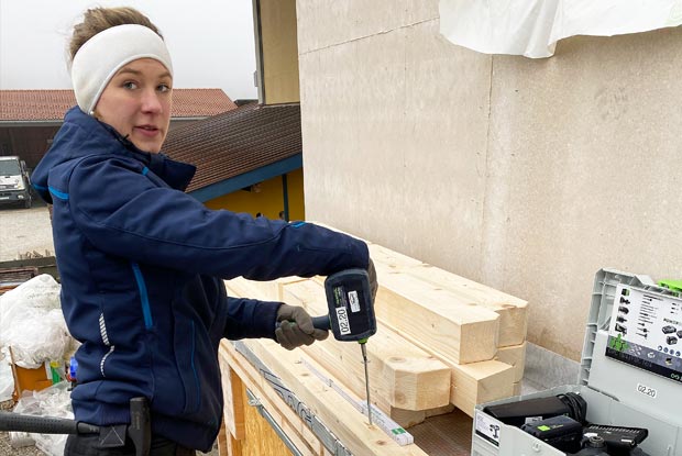 Die angehende Zimmerin Christina Hartl (17) vermisst den Praxisunterricht im Berufsgrundschuljahr (BGJ). Denn seit Mitte November sitzt sie im Homeoffice. Deshalb übt sie zuhause in Palling (Landkreis Traunstein) die Zimmerer-Praxis: Vor kurzem hat sie mit ihrer Schwester und Vater Ludwig Hartl, selbst Zimmermeister, einen Anbau aus Holz errichtet.