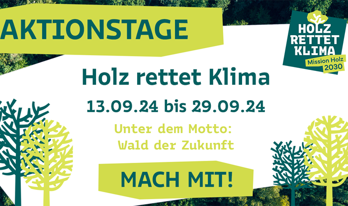 Vom 13. bis 29. September finden die Aktionstage der Initiative HOLZ RETTET KLIMA statt. Die Idee ist ganz einfach: Machen Sie mit und laden Sie Politik und Gesellschaft ein, die Branche und die Initiative kennenzulernen.