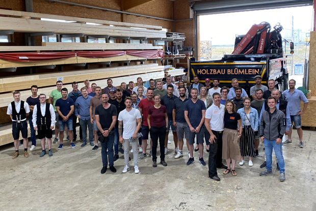 Für den potentiellen Nachwuchs der familiengeführten Zimmerer- und Holzbaubetriebe stand am 29. Juni 2022 ein besonderes Highlight auf dem Programm: Der Besuch bei zwei fränkischen Holzbau-Unternehmen: der Holzbau Blümlein GmbH in Forchheim und der Holzbau Schorr GmbH & Co. KG in Burghaslach.